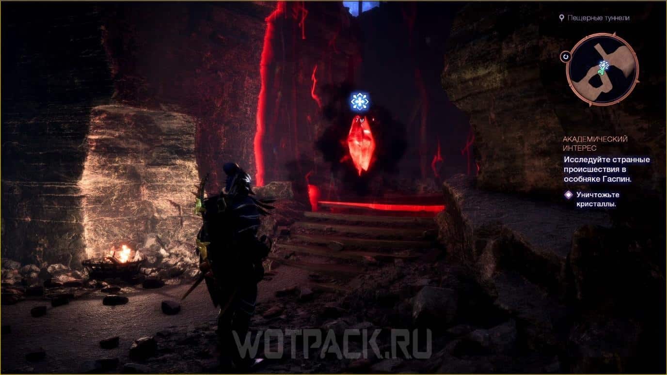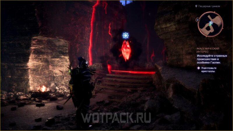 Попав в следующее ответвление пещеры, обнаружите еще несколько кристаллов. Точно так же разбейте их, следуя порядку на скриншоте, и проходите через главный барьер.