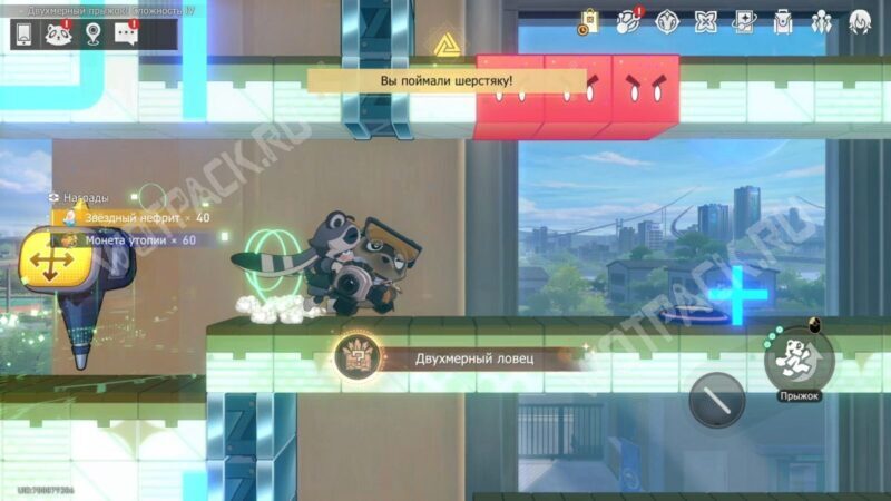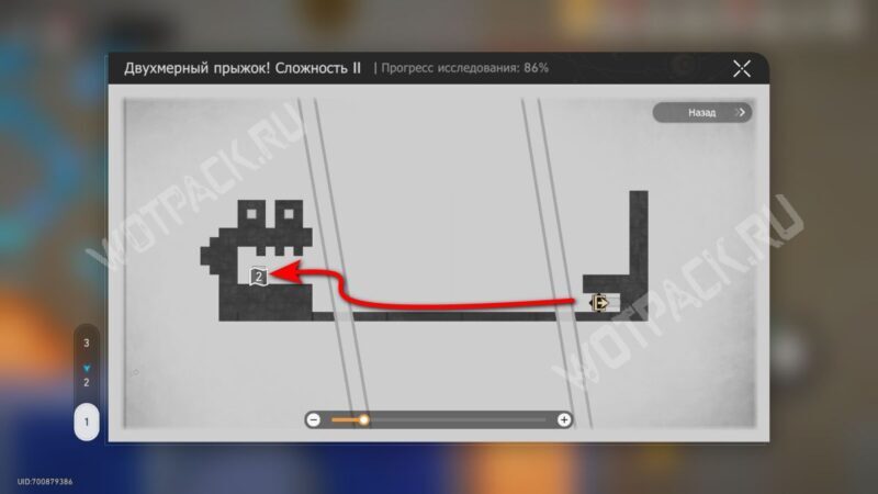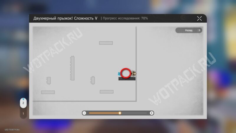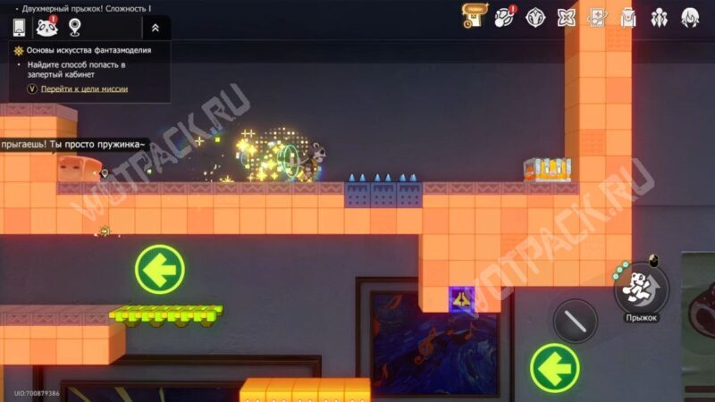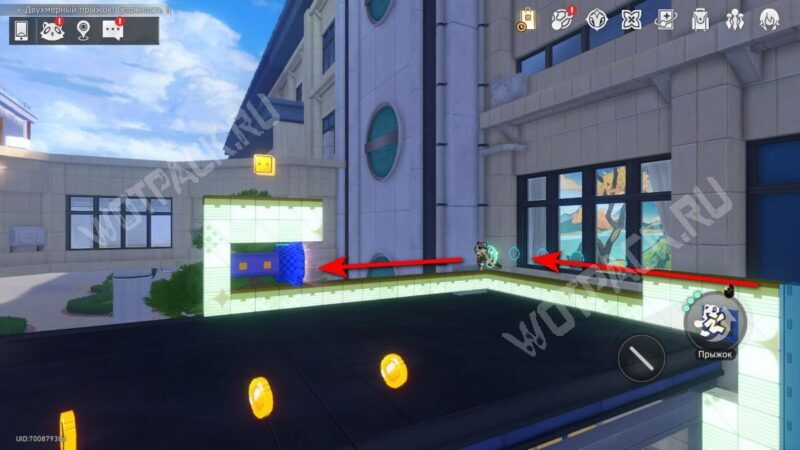 В том же помещение, где стоит предыдущий, начните испытание «Двухмерный прыжок».
