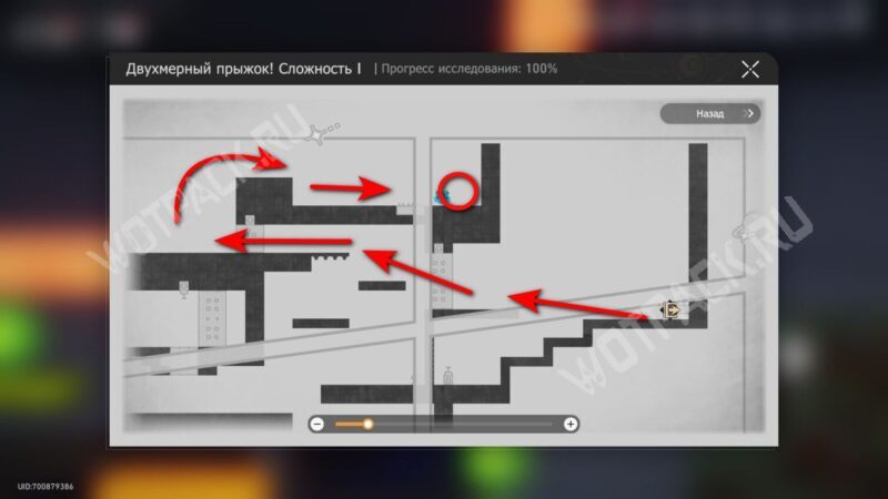 Не двигаясь с места, дважды поверните загадку по часовой стрелке. Встаньте на появившийся выступ справа и оттуда перепрыгните на низкую желтую платформу.
