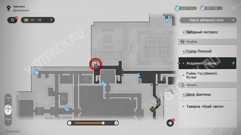 Вернитесь на второй этаж Двухмерного прыжка и двигайтесь налево, чтобы попасть на третий этаж академии.