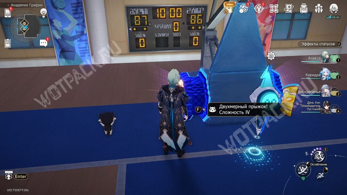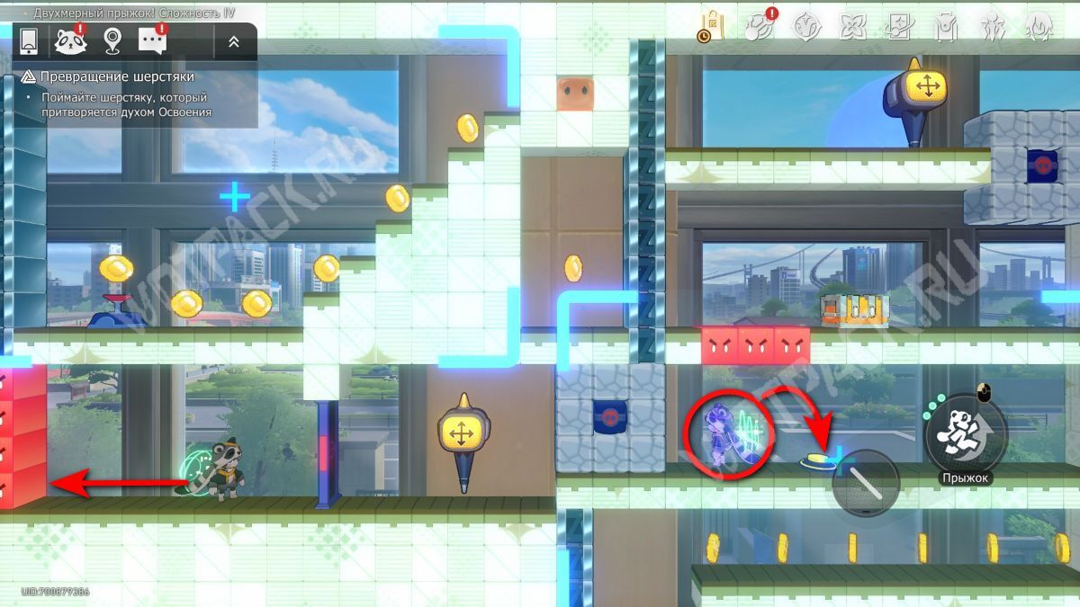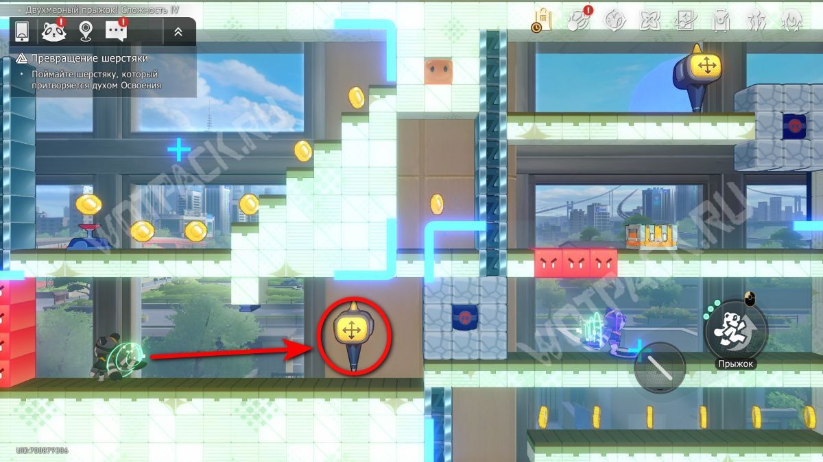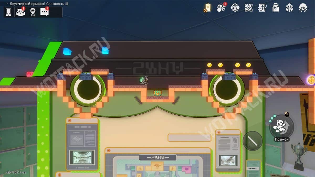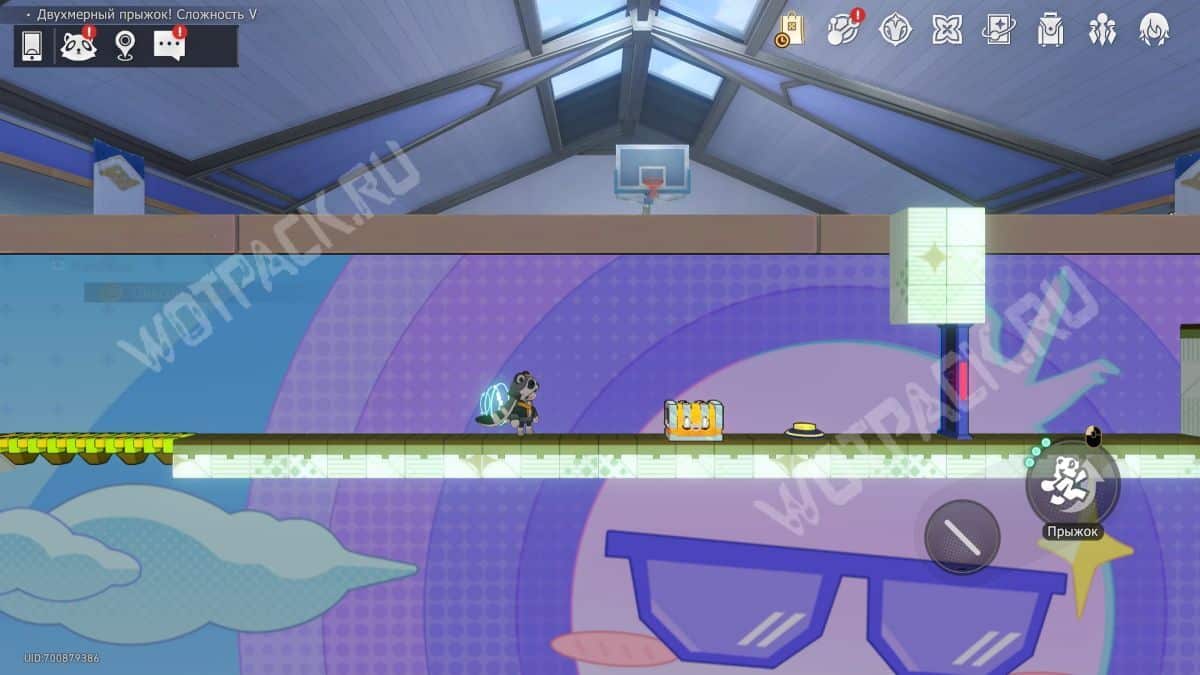 Поднимите механизм в центре спортзала и взаимодействуйте с левым Двухмерным прыжком.