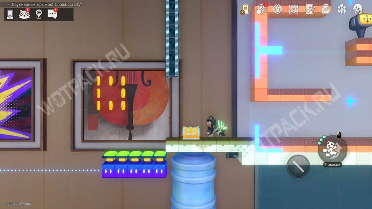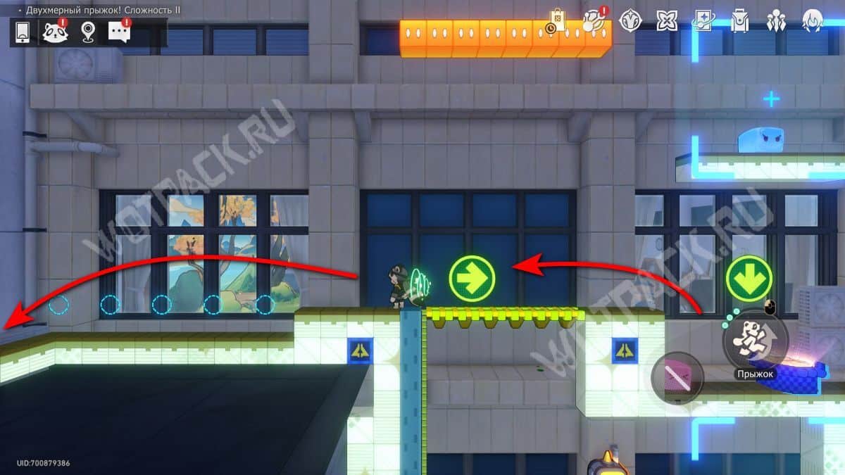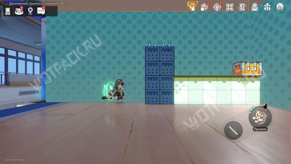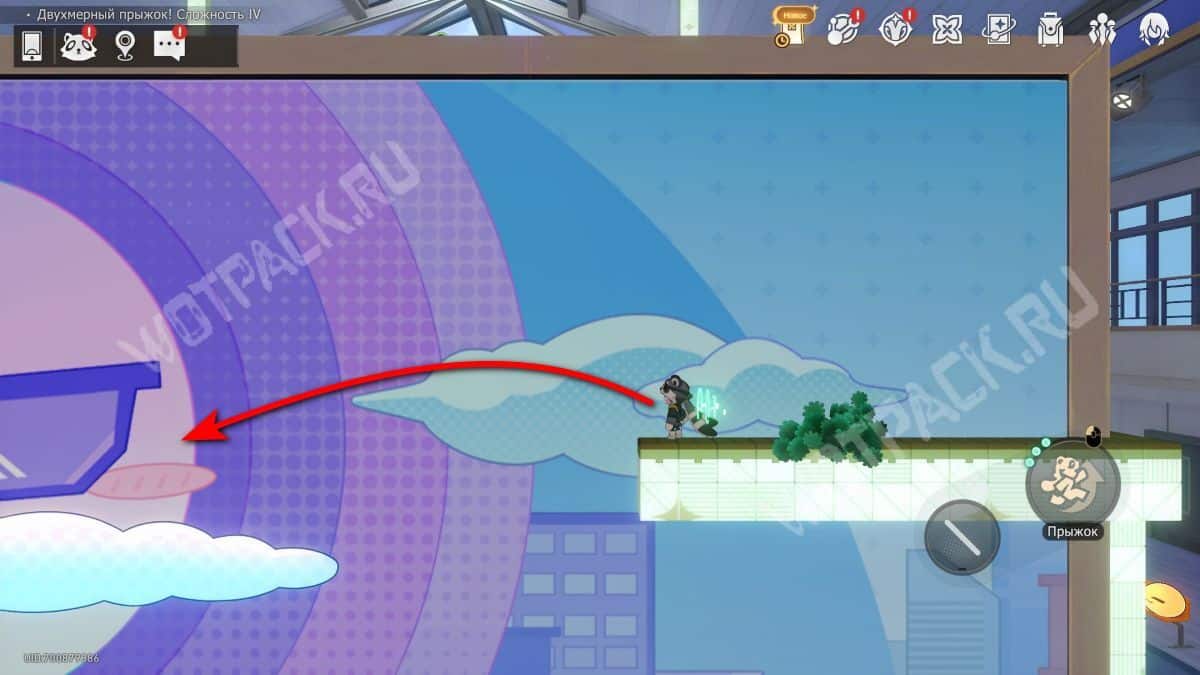 В том же помещение, где стоит предыдущий, начните испытание «Двухмерный прыжок».