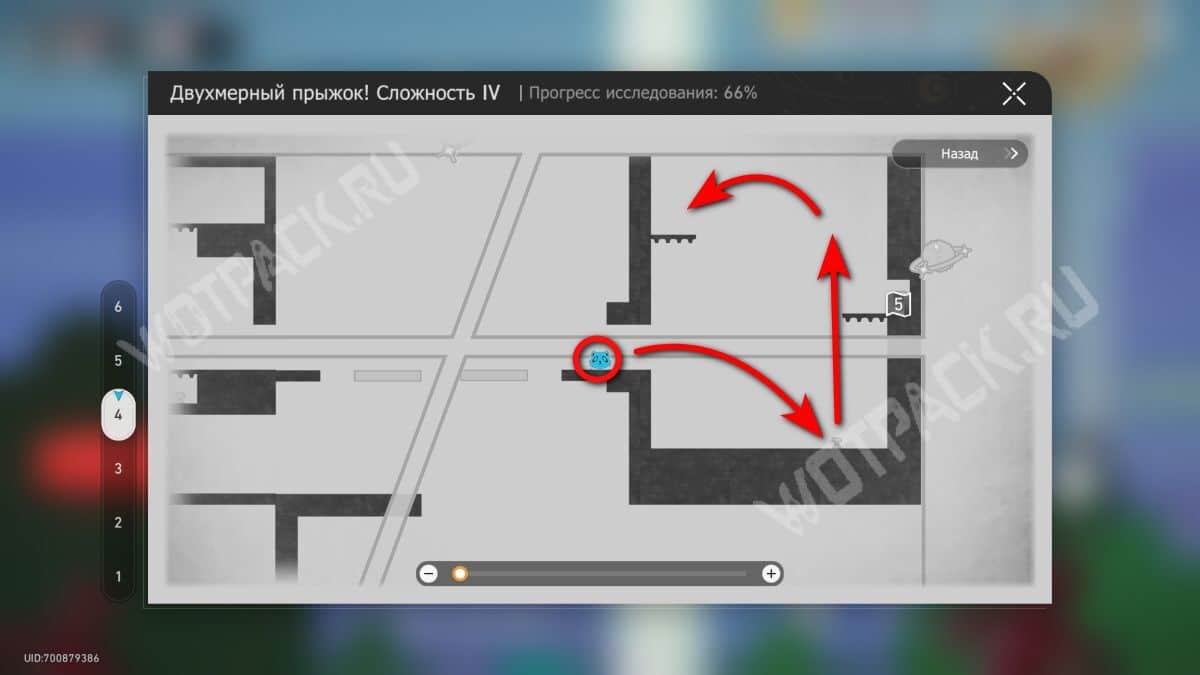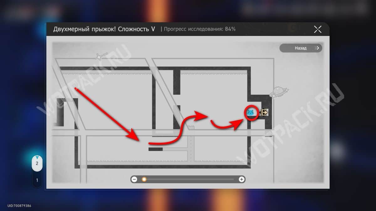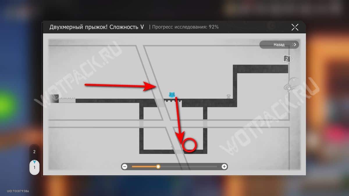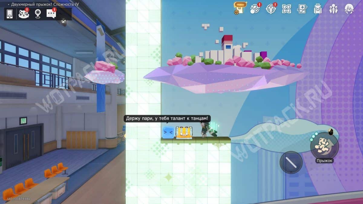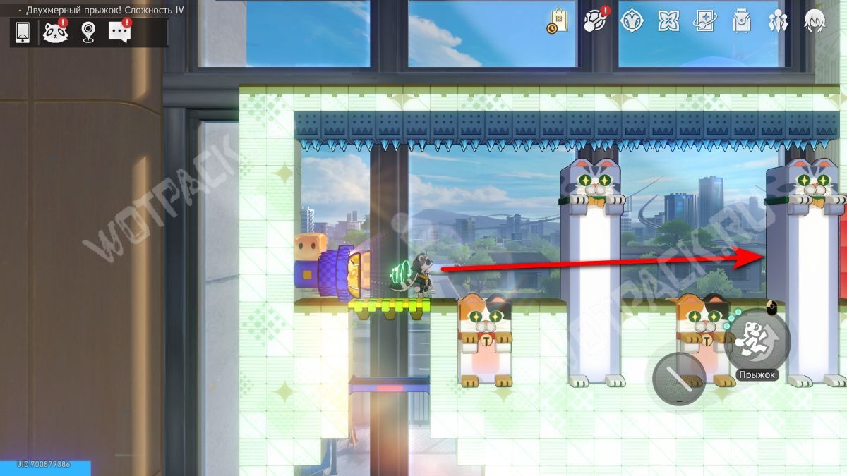 В том же помещение, где стоит предыдущий, начните испытание «Двухмерный прыжок».