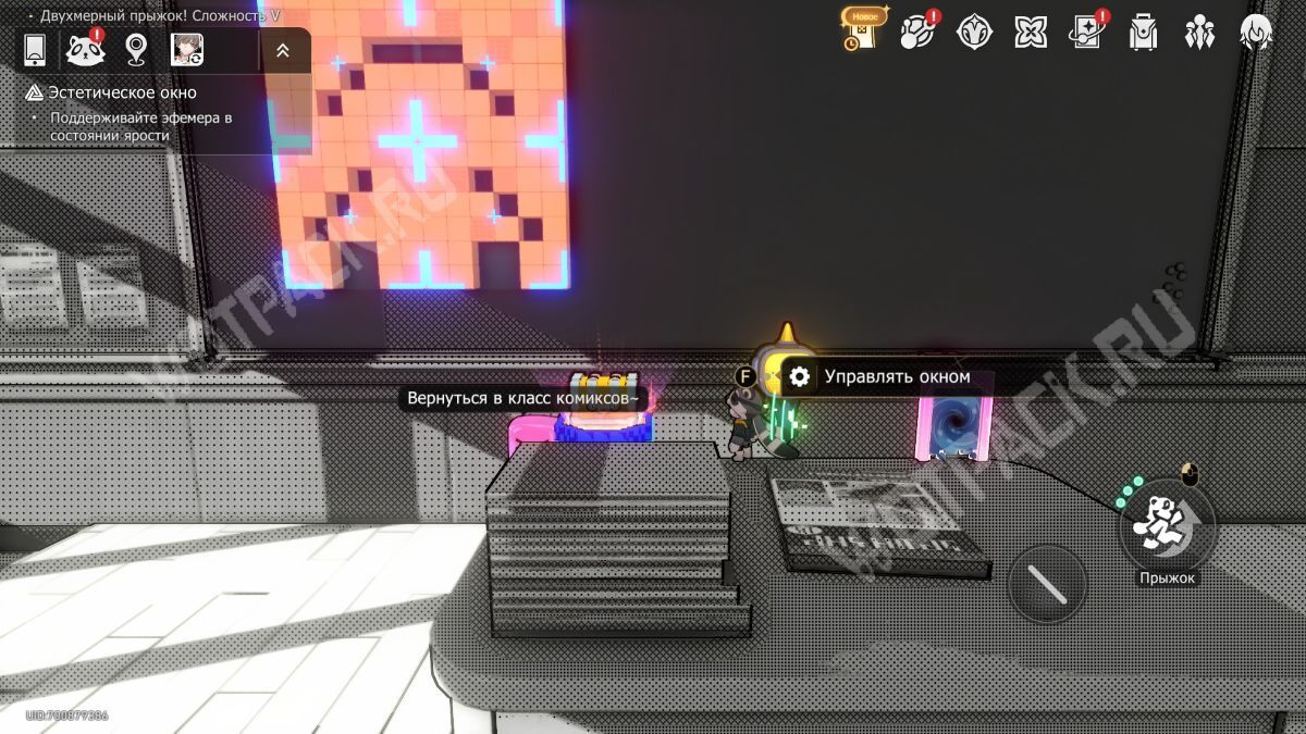 Завершите испытание двухмерного прыжка в классе комиксистов и решите загадку с окном.