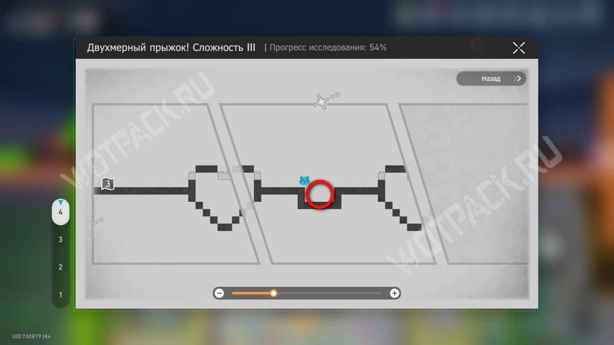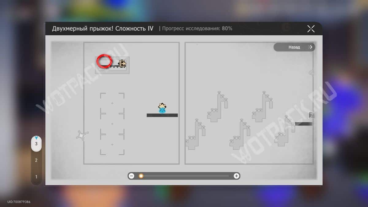 Не двигаясь с места, дважды поверните загадку по часовой стрелке. Встаньте на появившийся выступ справа и оттуда перепрыгните на низкую желтую платформу.