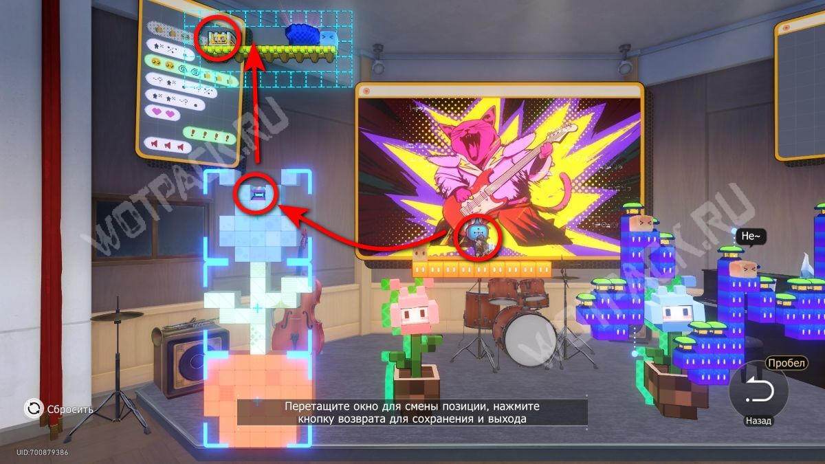 - Модуль под этим местом, куда поставили деталь, передвиньте вправо.