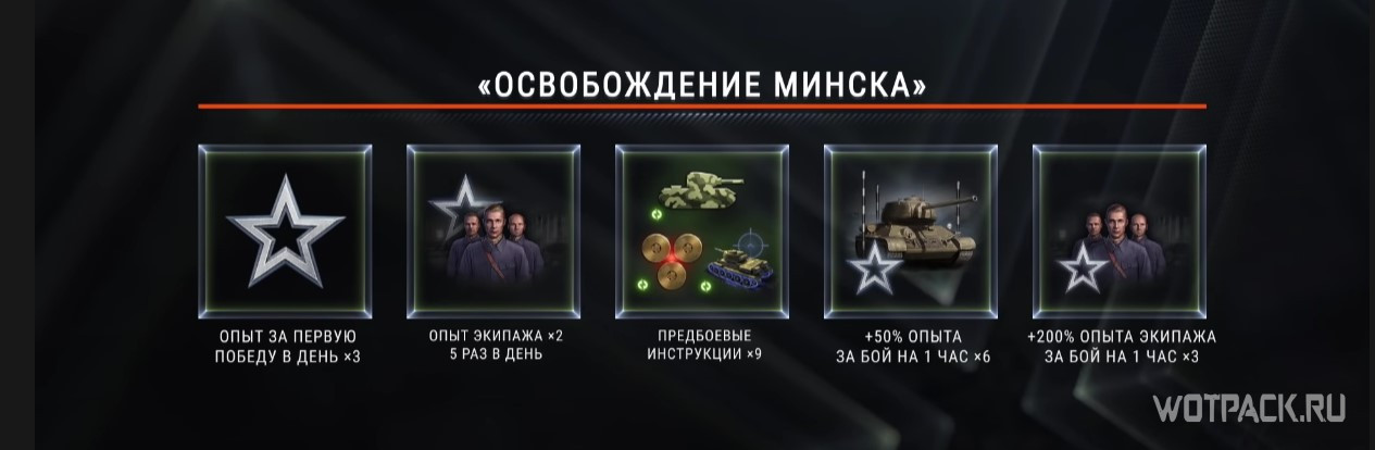 С 2 по 5 июля пройдет акции «Освобождение Минска» с повышенным боевым опытом за первую победу и бонусами к прокачке экипажа.