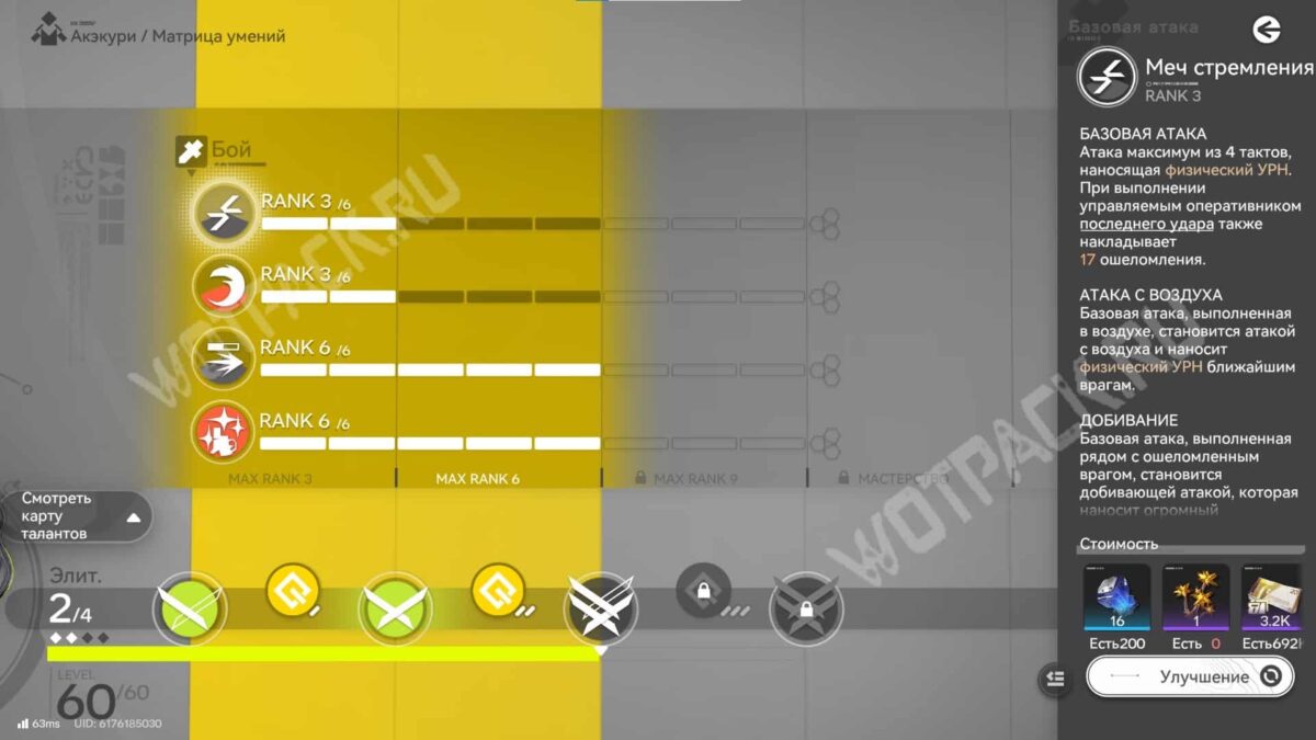 - Б/а «Меч стремления» — выполняет четыре удара и заполняет полоску оглушения.