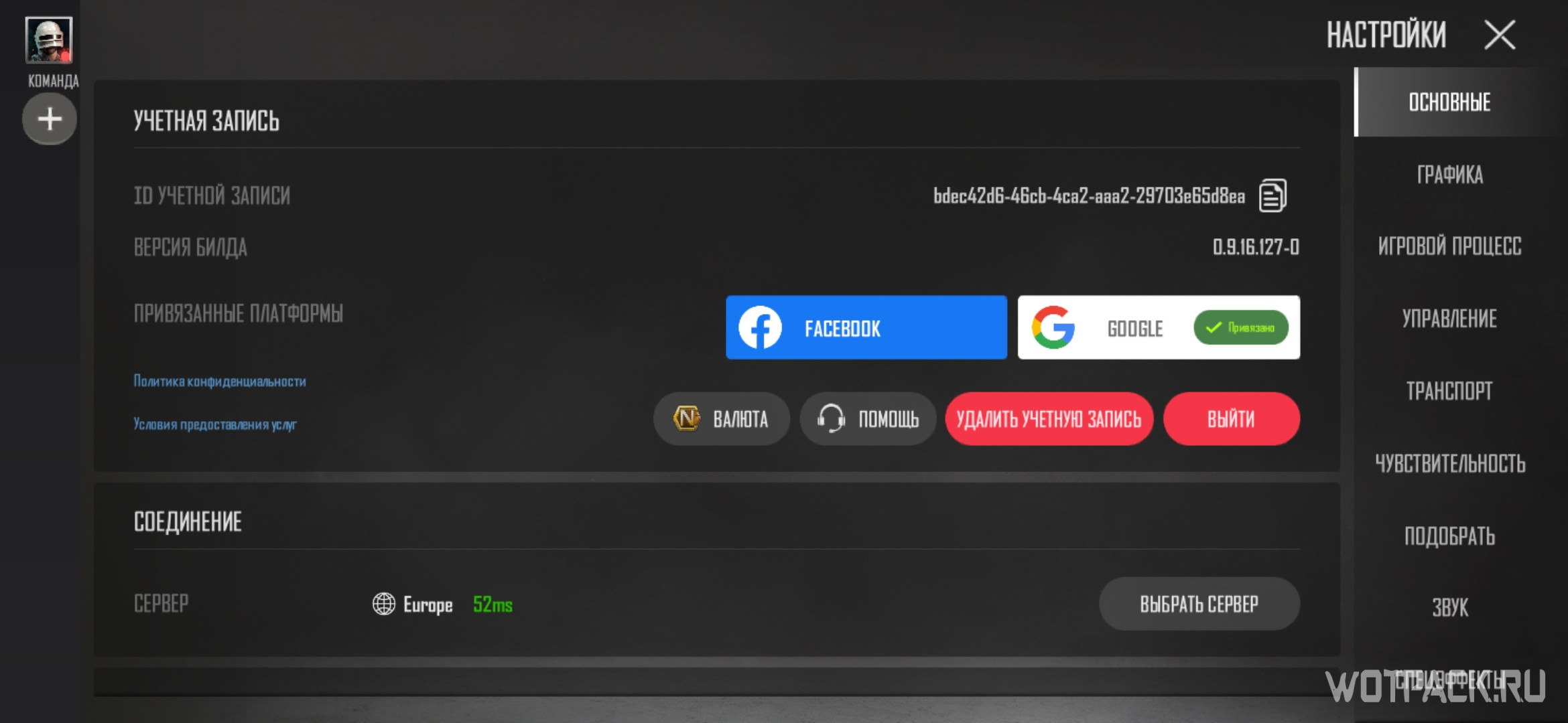 Чтобы узнать ID учетной записи в ПАБГ необходимо зайти в раздел «Настройки» и скопировать комбинацию чисел/символов.