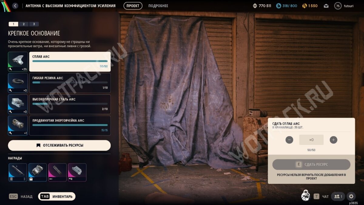 | Продвинутая энергоячейка ARC ×15 | Можно добыть с элитных арков, с «Кометы» либо раскопать в обломках первых волн. |