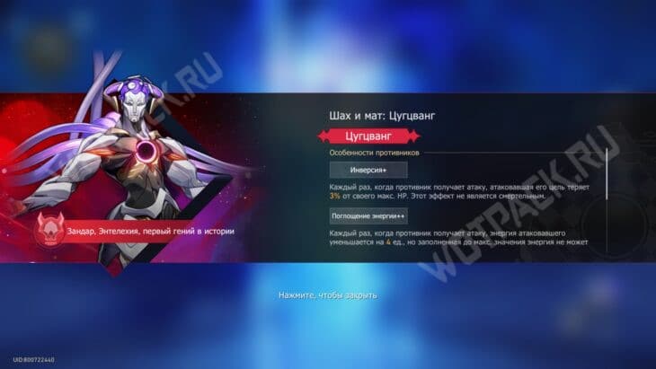 | Особенность испытания 1 | Эффект «Инверсия»: после использования атакующего приёма союзник теряет 2% от своего макс. здоровья (не может привести к смерти). |