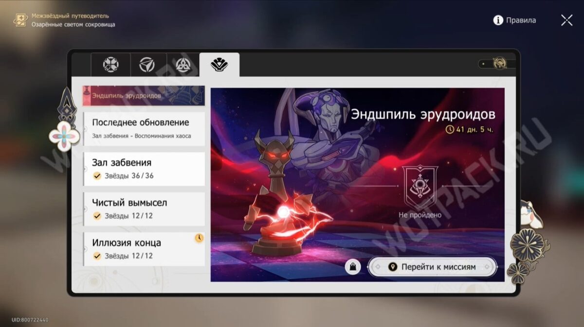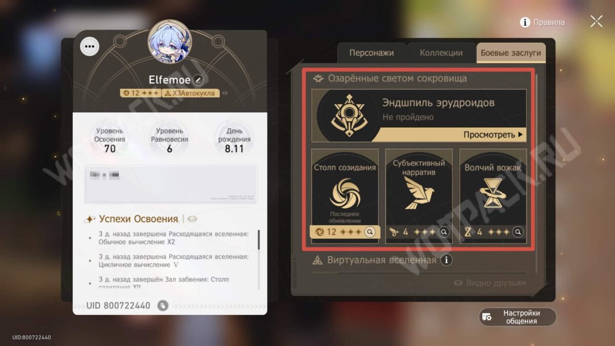 - Этап короля — основное испытание с ограниченным количеством циклов. В зависимости от числа звёзд (от 1 до 3⭐), полученных по завершении битвы, можно забрать особую временную рамку для аватара профиля, пыль одинокой звезды и новый предмет для развития персонажей — ключ вмешательства.
