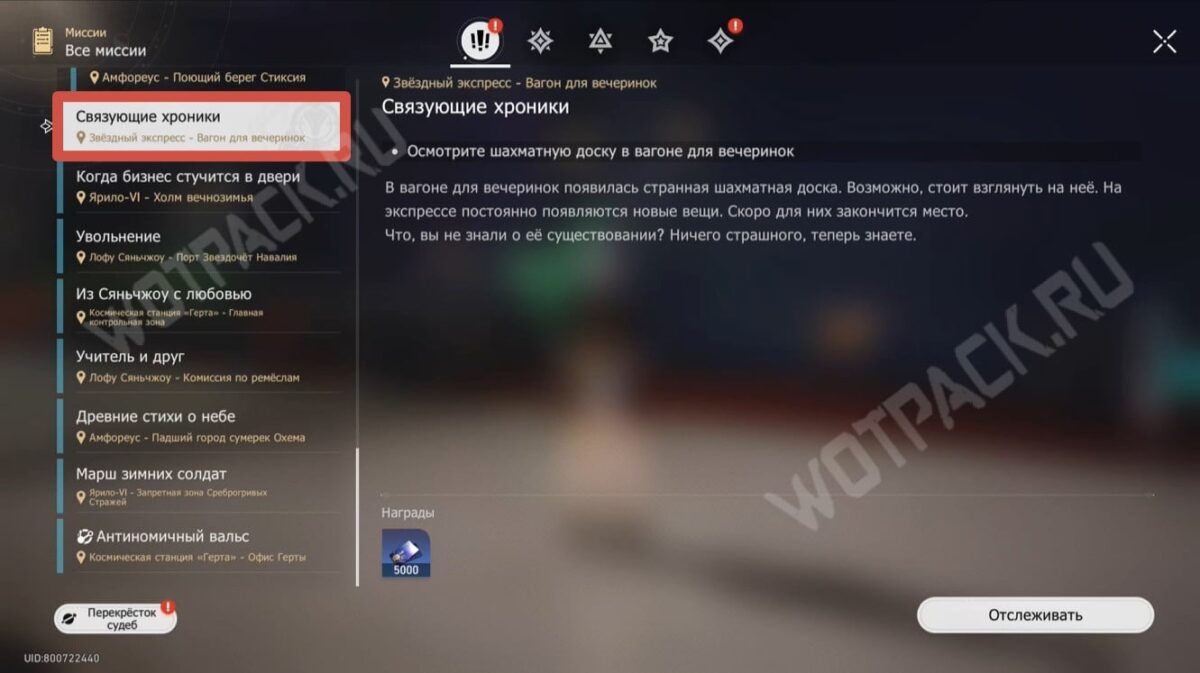 Выполнив требования, откройте «Межзвёздный путеводитель» и разверните раздел «Озарённые светом сокровища». Увидите специальное окошко активности, где нужно воспользоваться функцией «Перейти к миссиям». Автоматически перейдёте в квестолог и задание приключения «Связующие хроники».