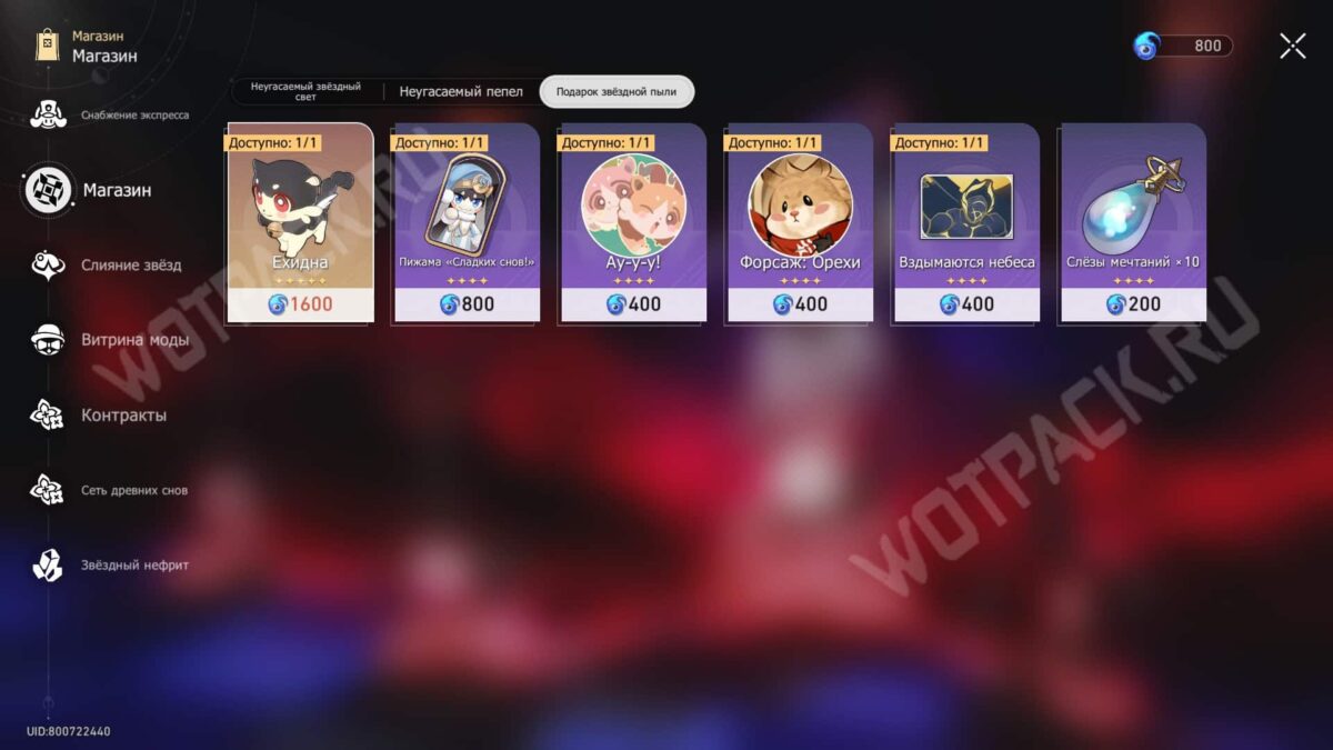 Подарок звёздной пыли — раздел, где в качестве основной валюты выступает пыль одинокой звезды. Её можно потратить на питомца Ехидну, новый костюм Пом-Пом — пижаму «Сладких снов!», разнообразные аватары, карточки и другое.