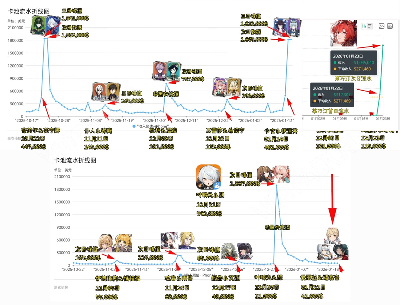 Под конец 2025-го в Zenless Zone Zero запустили баннеры охотницы Е Шуньгуань и кролика Чжао, и основную часть прибыли они принесли ещё тогда, а не в январе 2026 года. После них шли рераны зайца Элис, Солдата 0 Энби, певицы Астры Яо, благодаря чему проект оказался на 8-й строке с $23 245 000.