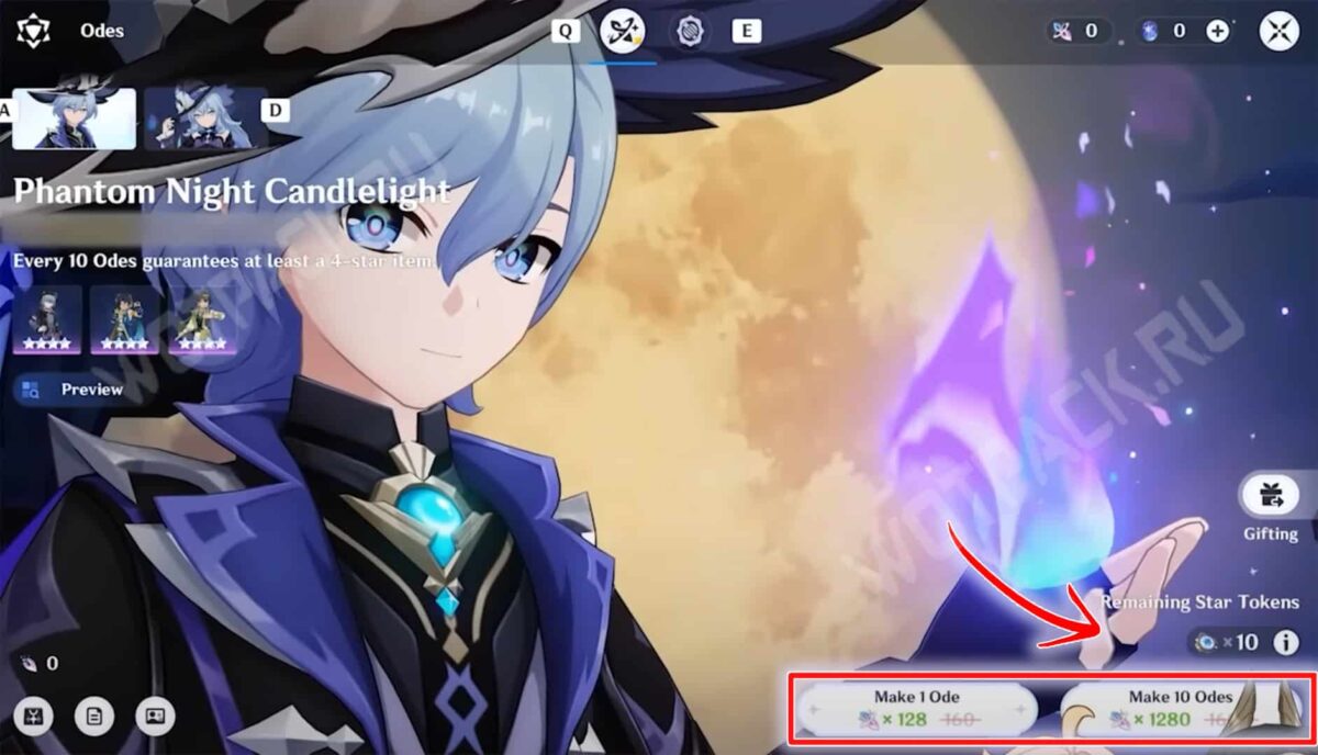 В течение всей версии Луна 2 будет действовать ивентовая Ода «Призрачная ночь свечей», позволяющая забрать 5⭐️ образ «Веселье при свечах» для мужской и женской версии Манекена и три 4⭐️ комплекта, выполненных в стилистике Натлана, Сумеру и готической современности.