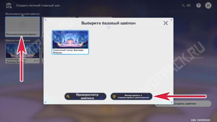 Чтобы украсить созданный зал, необходимо во время его создания выбрать не готовую тему, а «Пользовательский шаблон». Далее нажмите «Импортировать и отредактировать расположение», чтобы перейти в режим строительства.
