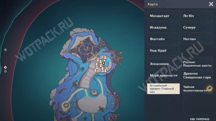 - Переключитесь на любой из регионов и выберите точку телепортации или статую Архонтов для быстрого перемещения.
