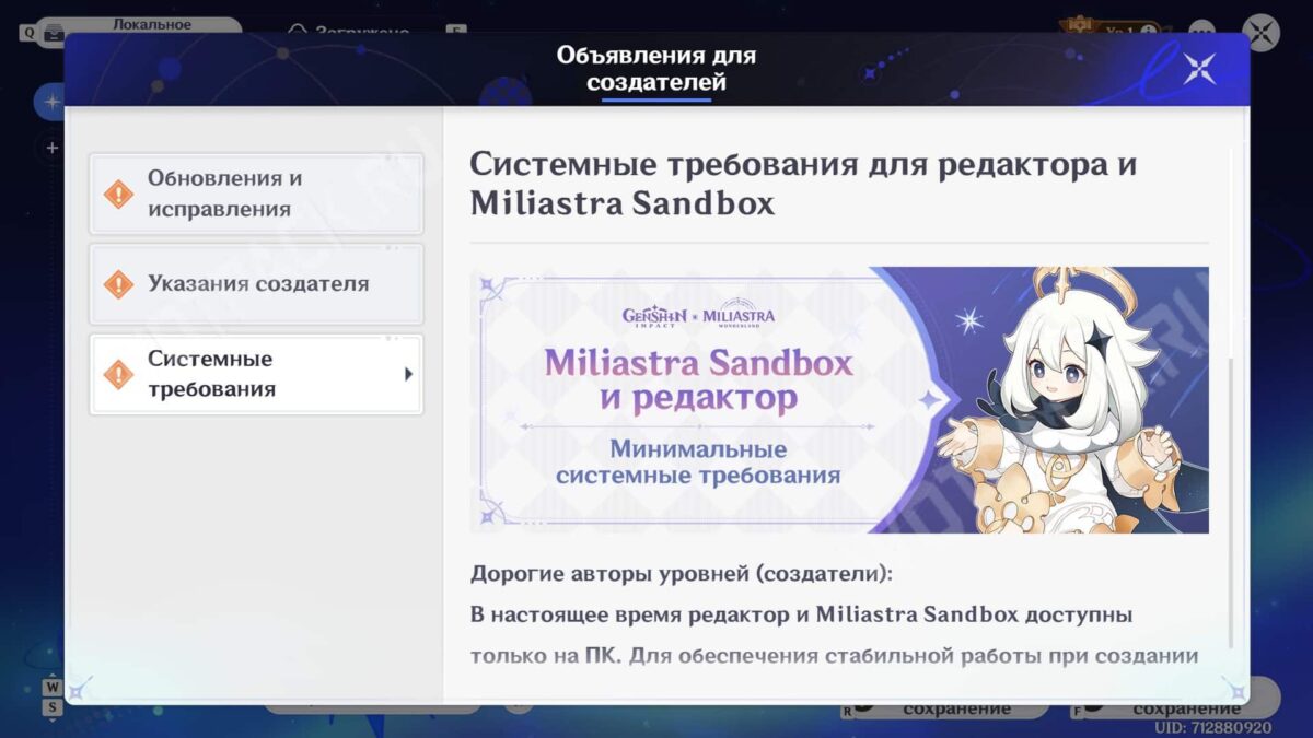 В официальных новостях сказано, что в настоящее время редактор и Miliastra Sandbox доступны только на ПК. Это заявление касается только части для программирования, поэтому зайти в лобби и в игры должно быть возможно на всех платформах.