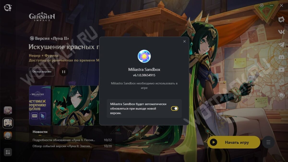 Если вовсе не планируете посещать режим, в лаунчере HoYoPlay в разделе «Milliastra Sandbox» можно отключить автообновление песочницы, что позволит в дальнейшем загружать только необходимые игровые данные.