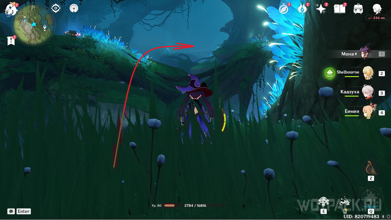 Обойдя дерево, сверните направо и двигайтесь в эту сторону вдоль стены. Необходимо пройти в ответвление пещеры, чтобы справа осталось священное дерево. Попадете в небольшой закоулок с врагами и сундуком, в этой точке найдете гриб, служащий ориентиром. Нужно пройти в отверстие над ним.