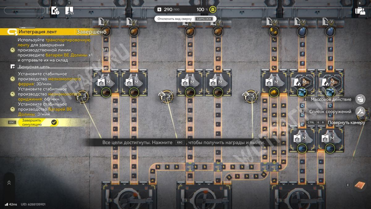 Чтобы выполнить бонусную цель и наладить производство, установите дополнительные линии по измельчению феррия и изготовлению мелкомолотого ориджиния. Песчанолиста хватит на все задачи.