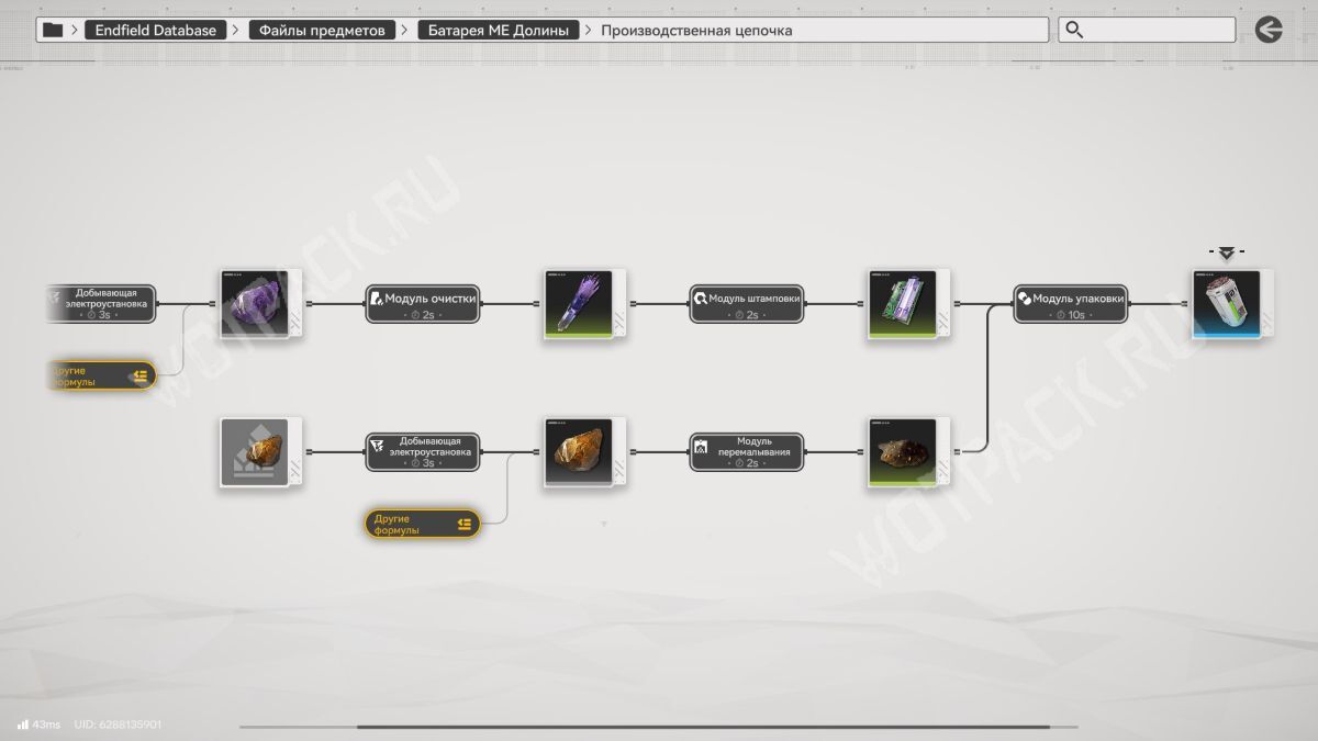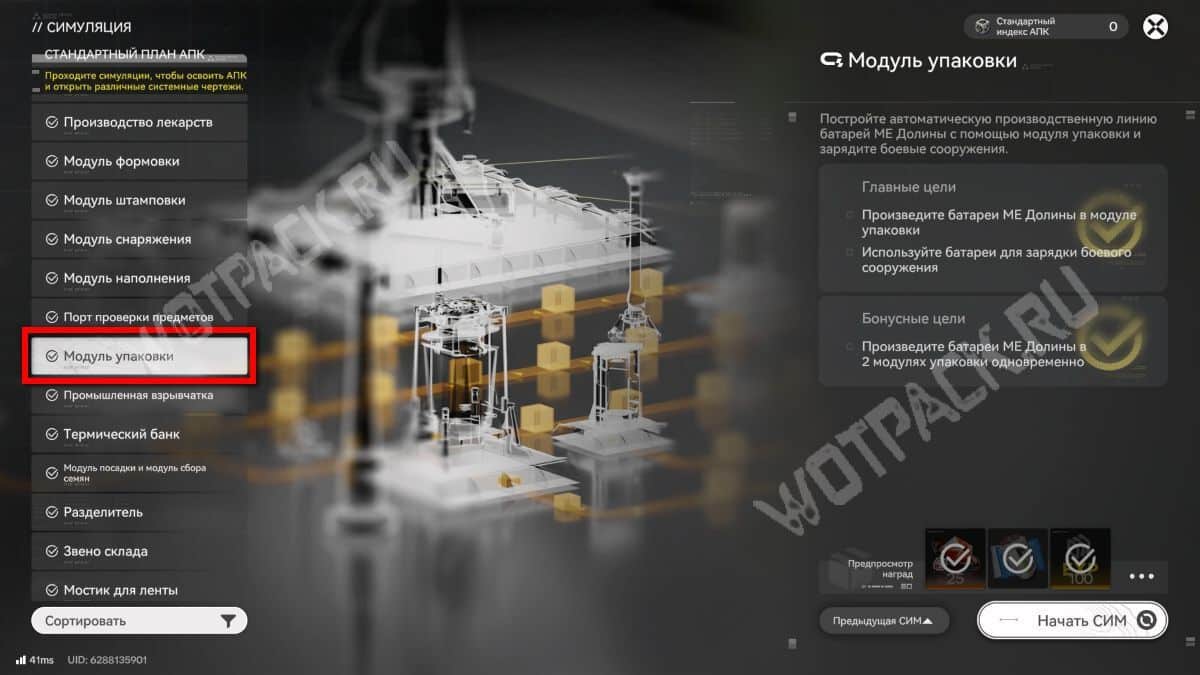 - Модуль упаковки — главное сооружение в цепочке, крафтящее готовые изделия из остальных ресурсов. При достаточном количестве материалов на складе можно пропускать дальнейшие этапы и направлять все компоненты напрямую в него.