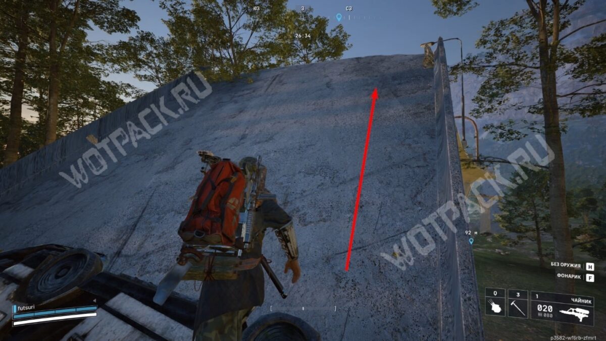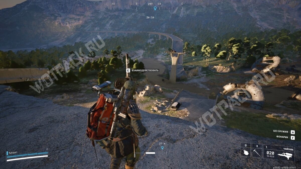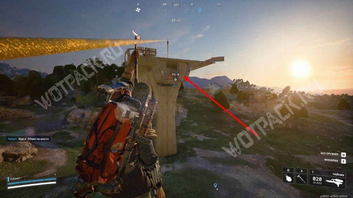 Вернитесь к южной части трассы и заберитесь наверх по крутому склону. Если персонаж скатывается, двигайтесь по ограждению справа. По дороге пройдите до края, где находится зипка — взаимодействуйте с ней, чтобы установить инструмент.