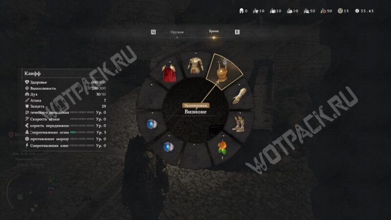Если значок не появился, экипируйте Визионе через инвентарь или круговое меню снаряжения. После этого снова вызовите селектор снаряжения, наведитесь на шлем и отпустите кнопку.