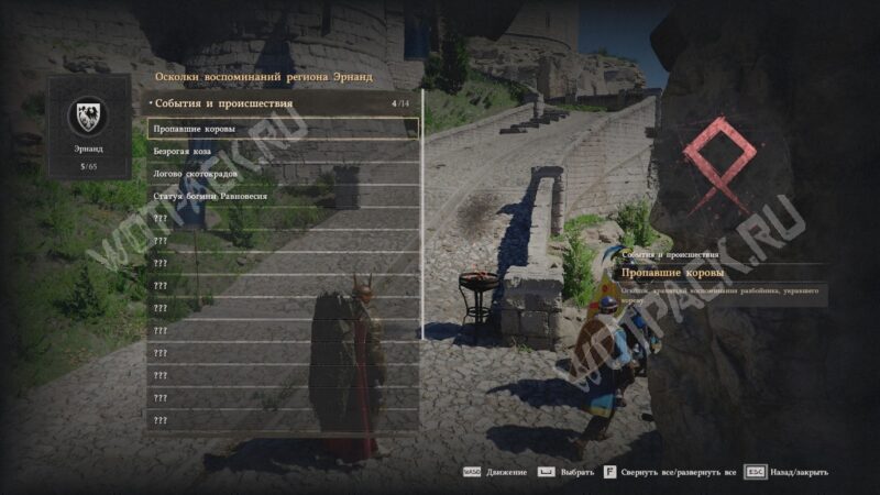 - В предложенном списке категорий выберите «Эрнанд», а в нём — осколок памяти «Пропавшие коровы» в категории «События и происшествия».