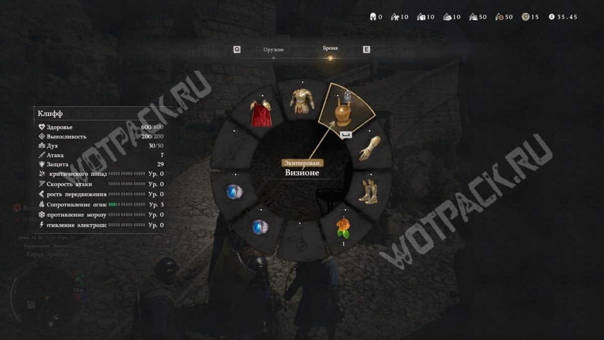 Если значок не появился, экипируйте Визионе через инвентарь или круговое меню снаряжения. После этого снова вызовите селектор снаряжения, наведитесь на шлем и отпустите кнопку.