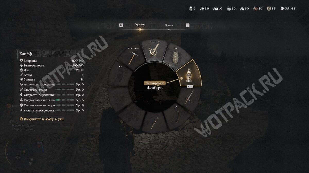 Когда разберётесь со всеми разбойниками, экипируйте фонарь через радиальное меню снаряжения («F2» на клавиатуре или стрелка влево на геймпаде).