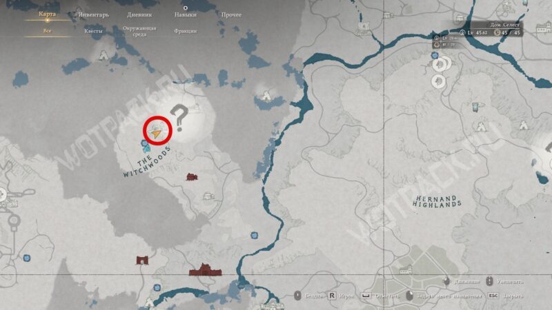 В локации Ведьмин лес располагается Дом ведьмы, в котором живёт Эловен. Она находится западнее лагеря Серогривых у поместья Альфонсо.