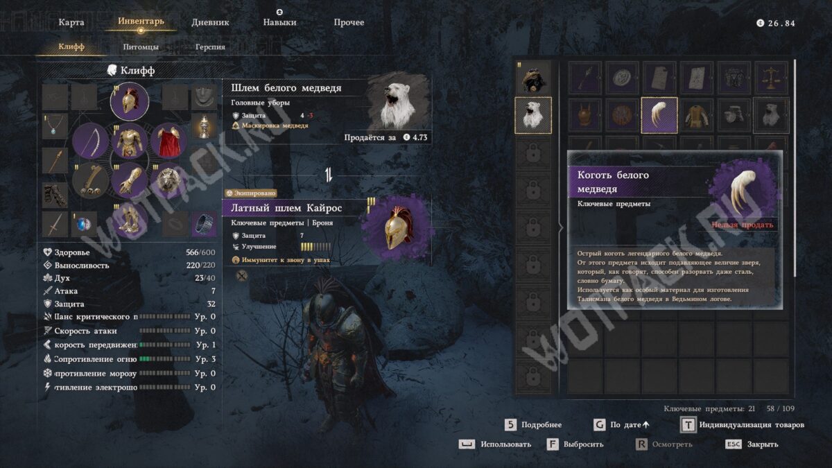 - Шлем белого медведя — головной убор с +4 к защите, дающий медвежью маскировку;