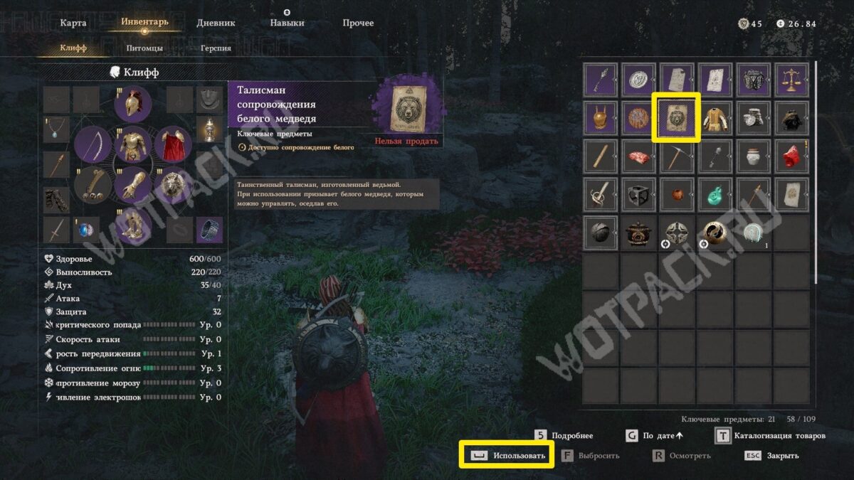 Откройте инвентарь и используйте свиток, чтобы добавить его в список маунтов. Затем нажмите «F1» и в колесе выбора персонажей смените текущее ездовое животное на белого медведя.