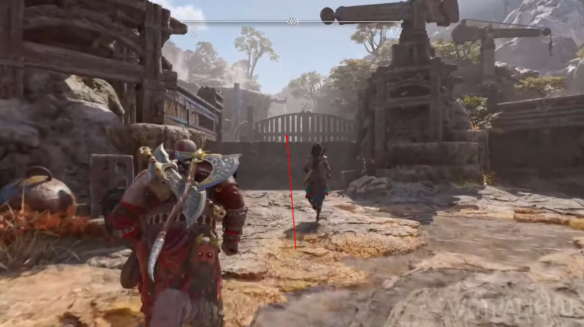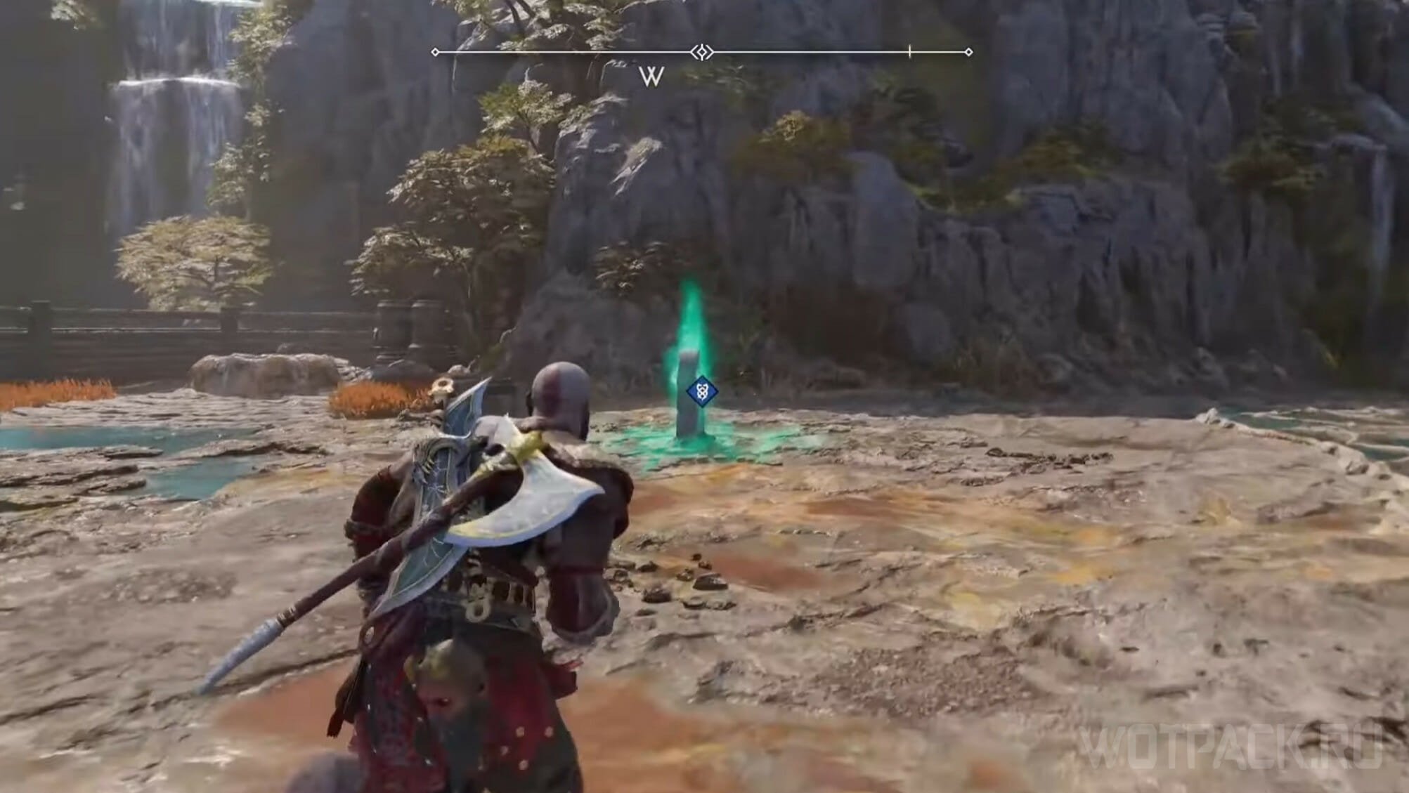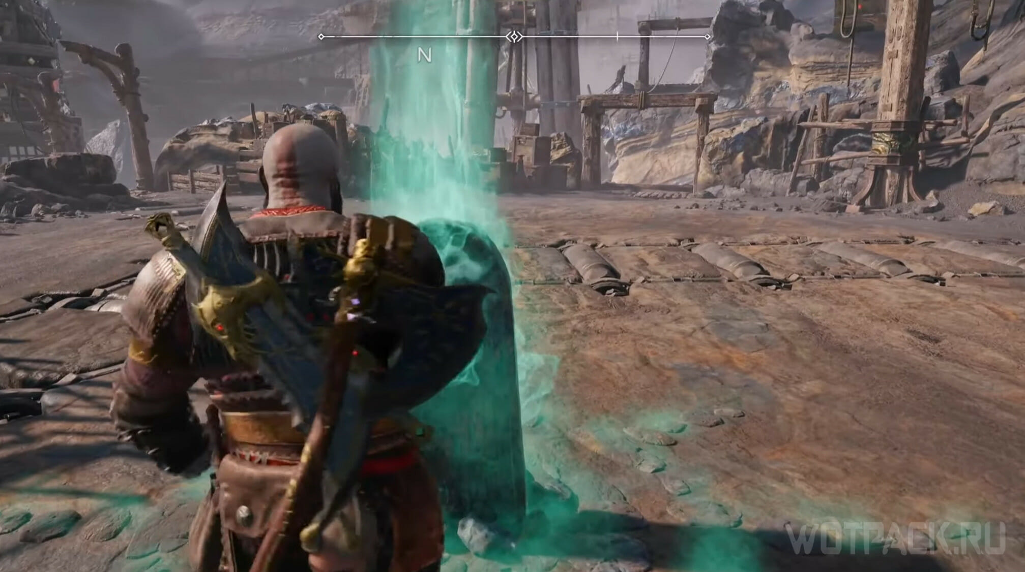 - Хвитсерк взлетает и почти сразу же приземляется в зеленую область, в которой на момент «прыжка» стоит Кратос.