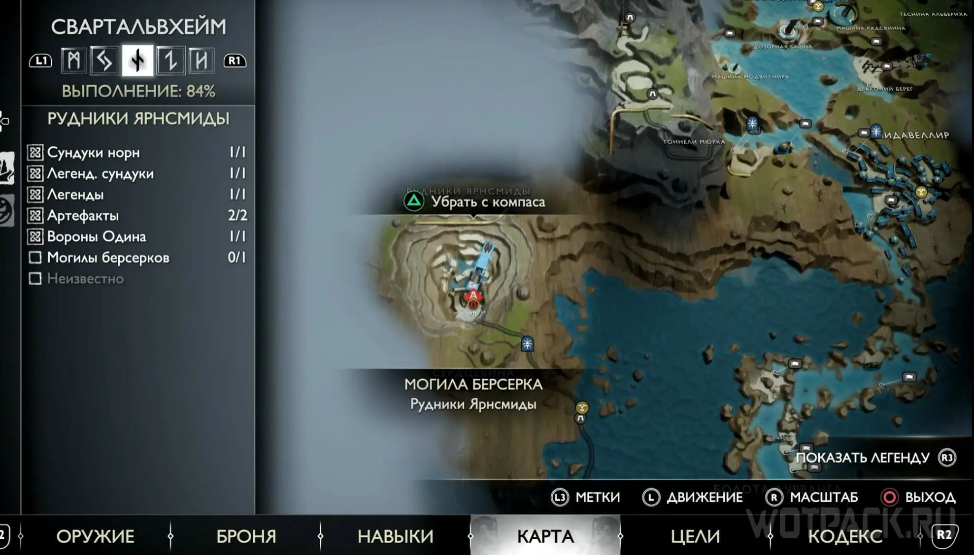 Двух берсерков сразу сможете найти в Рудниках Ярнсмиды, завершив главу «Слово судьбы». Чтобы добраться до нужной точки, сначала переместитесь к Мистическим вратам Сердцевины, а затем идите направо. Слева пройдите через отверстие в скале, залезьте наверх и следуйте вправо. Когда окажетесь на поверхности, обнаружите надгробие.