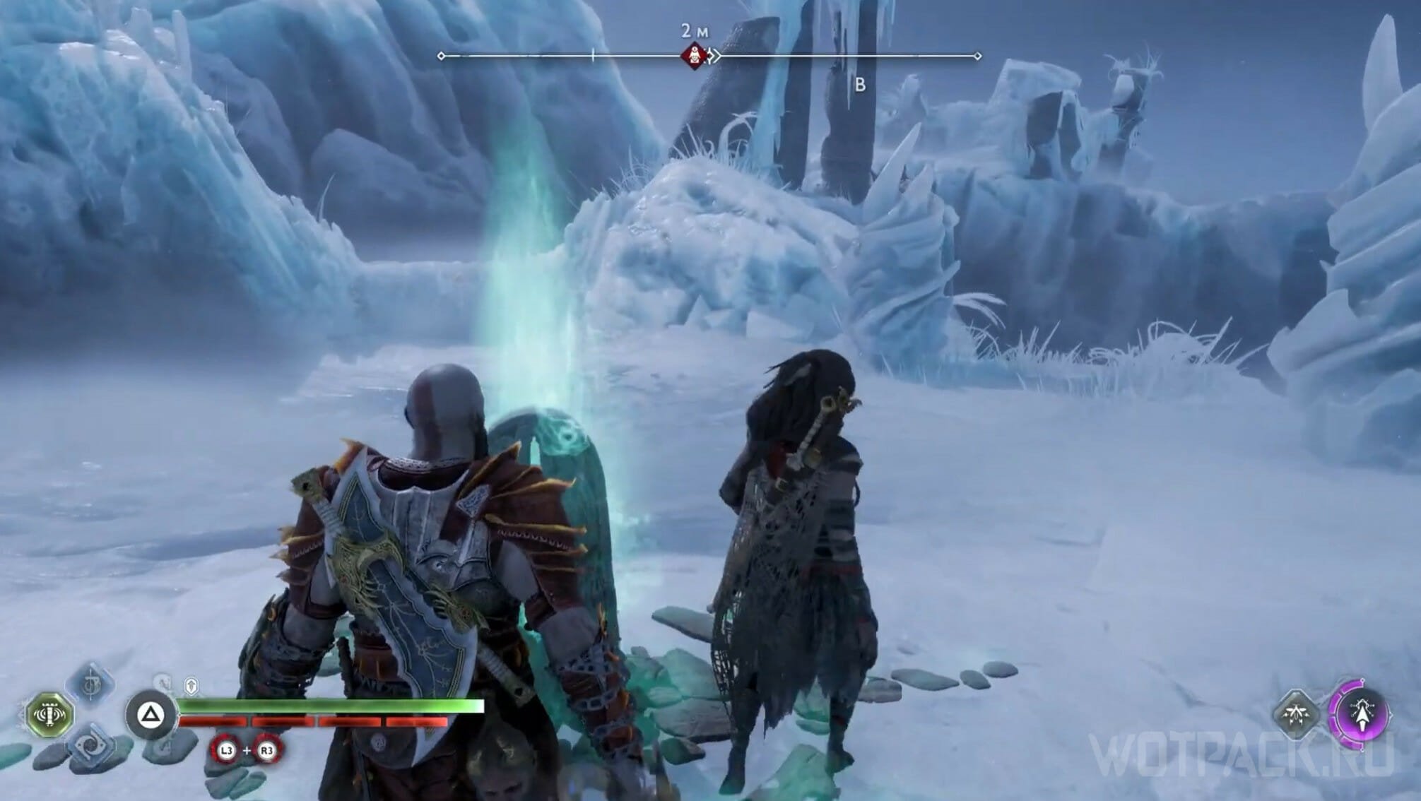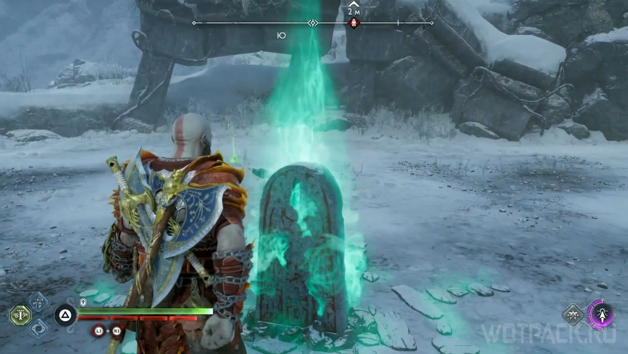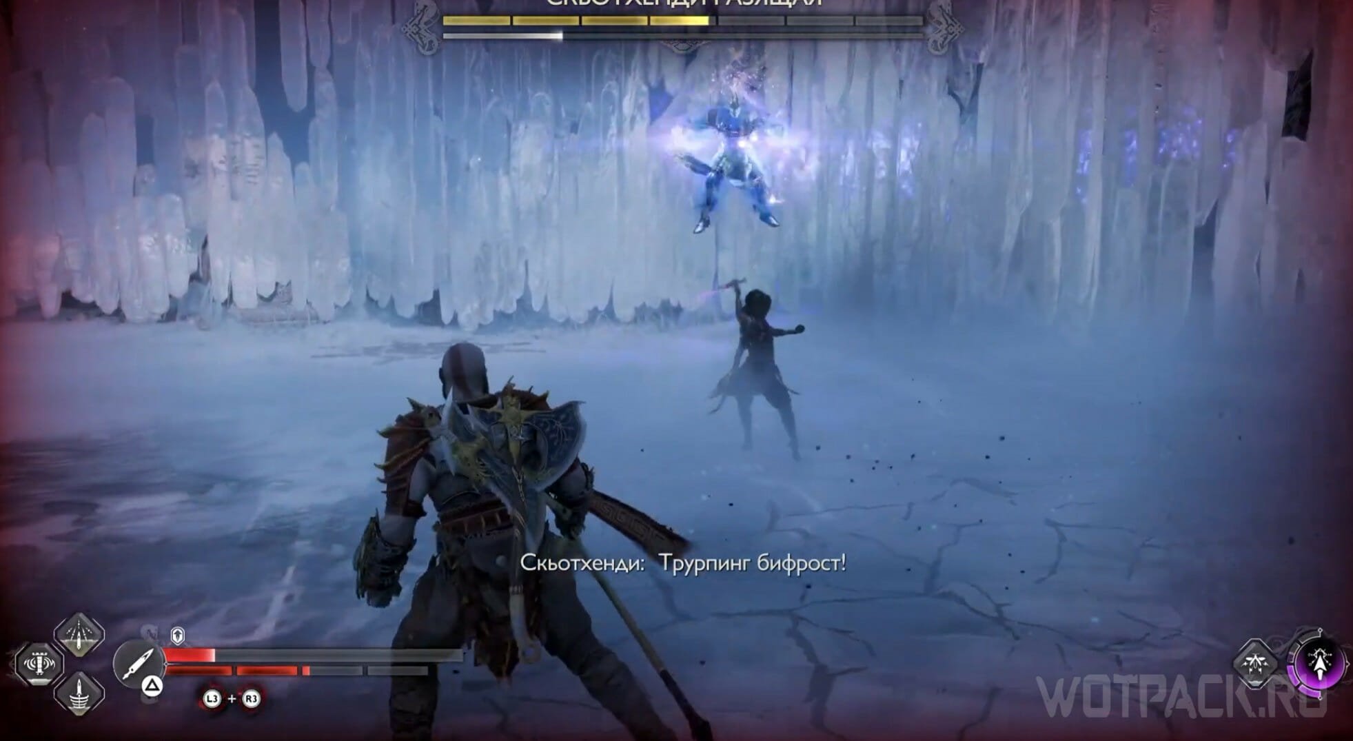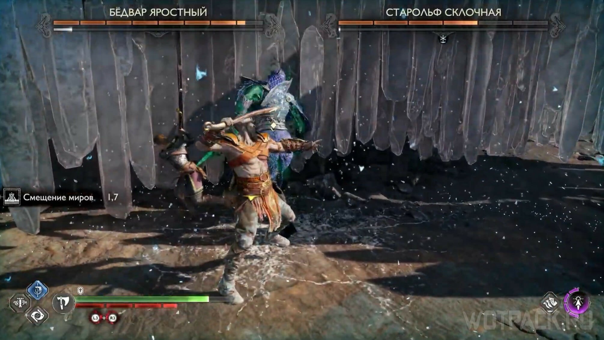 - Пока Кратос лечится, нажимайте квадрат, чтобы попросить компаньона атаковать противника и оттянуть его следующий удар.