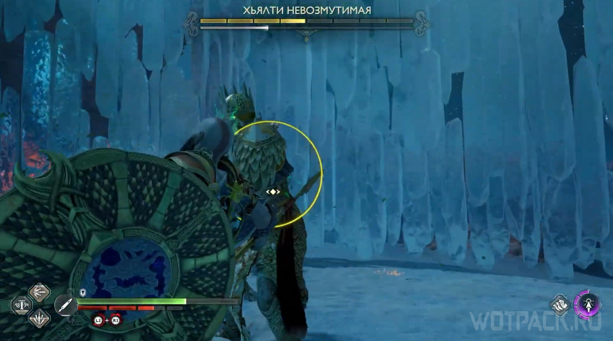 Хьялти не имеет большого пула атак, единственное, чего действительно стоит опасаться – удар щитом, наносящий значительный урон. По этой причине постоянно сокращайте дистанцию с боссом. Почти все ее атаки вблизи парируются и блокируются.