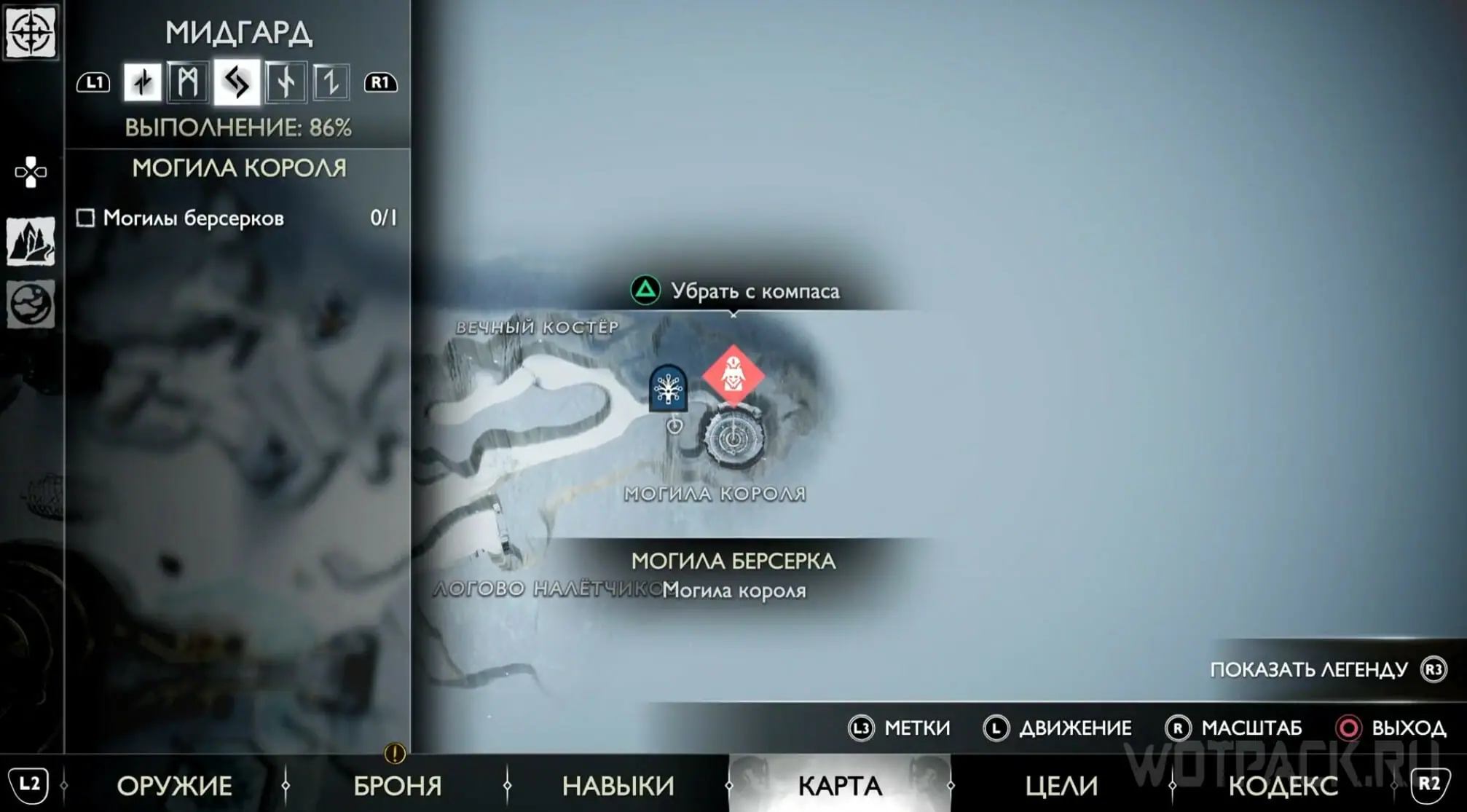 Чтобы открыть могилы берсерков, необходимо взять второстепенное задание «В самый раз для короля«. Оно автоматически добавляется в список просьб во время выполнения главы «Слово судьбы». В рамках этого квеста Кратос получит Неактивную рукоять Скофнунга [Inert Hilt of Skofnung], являющуюся ключевым предметом – именно она поможет разблокировать надгробия.