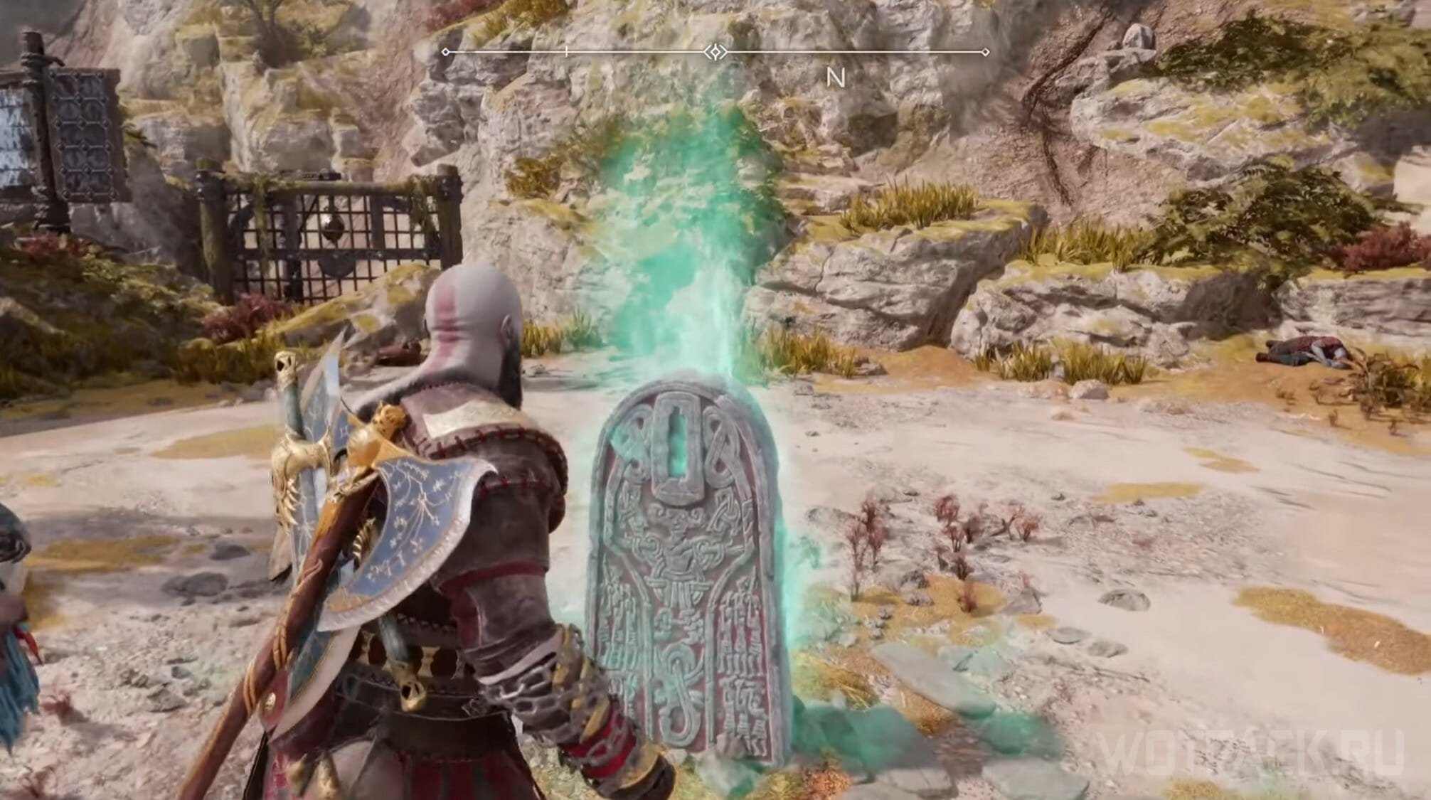 Завершив главу «Кузнец своей судьбы», спуститесь с горы на низину, дойдите до открытой площадки и найдете могилу. Альтернативный путь можно проделать из Нидавеллира. На пристани пройдите через здание, сверните налево и, взобравшись на выступ, откройте ворота. По итогу дойдете до места с надгробием.