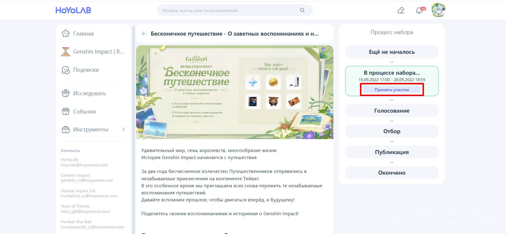 Надеемся, вы получили всю необходимую информацию о событии Бесконечное путешествие в Genshin Impact. Если остались какие-либо вопросы по правилам или участию, пожалуйста, напишите об этом в комментариях. Желаем удачи в конкурсе!