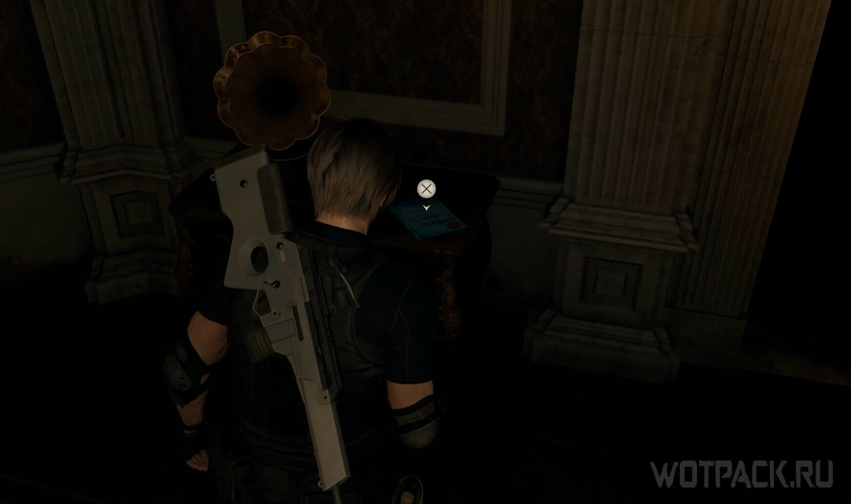 Добравшись до десятой главы, проследуйте в Главный зал. Пройдите по лестнице наверх, добравшись до статуи, после чего двигайтесь в правую сторону. Дойдете до небольшой комнаты, справа расположена тумбочка с граммофоном, а неподалеку окажется и голубая записка.