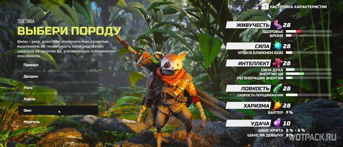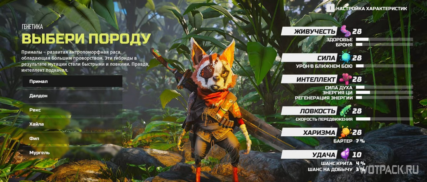 На этом все настройки персонажа заканчиваются. Игрок получает в свое распоряжение уникального мутанта.