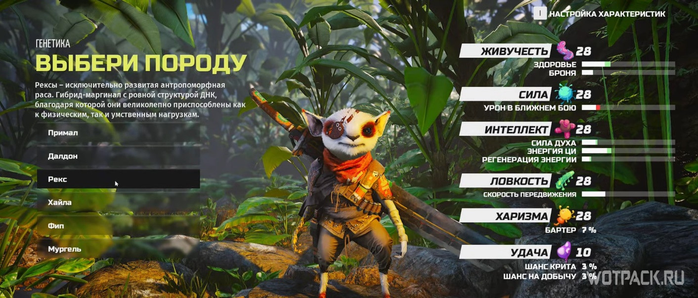 После выбора понравившегося вам зверька можно начать процесс генетической мутации, добавив уклон развития в пользу некоторых параметров. Фактически это позволяет усилить некоторые слабые стороны, либо бустить до упора какую-то конкретную характеристику.
