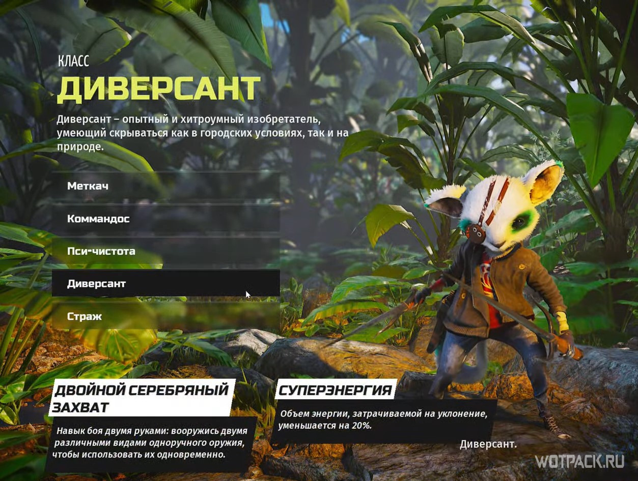 - Диверсант – уклоняется с меньшими на 20% затратами энергии, а также умеет использовать в бою сразу два разных одноручных оружия;