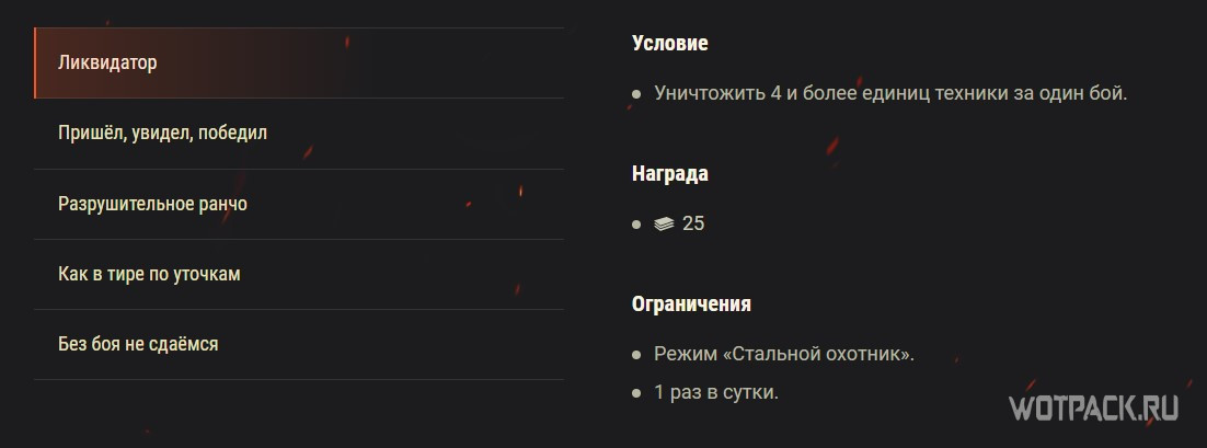 Для этого решили добавить две новых боевые задачи, которые доступны для выполнения раз в сутки: «Ликвидатор» и «Пришел, увидел, победил».