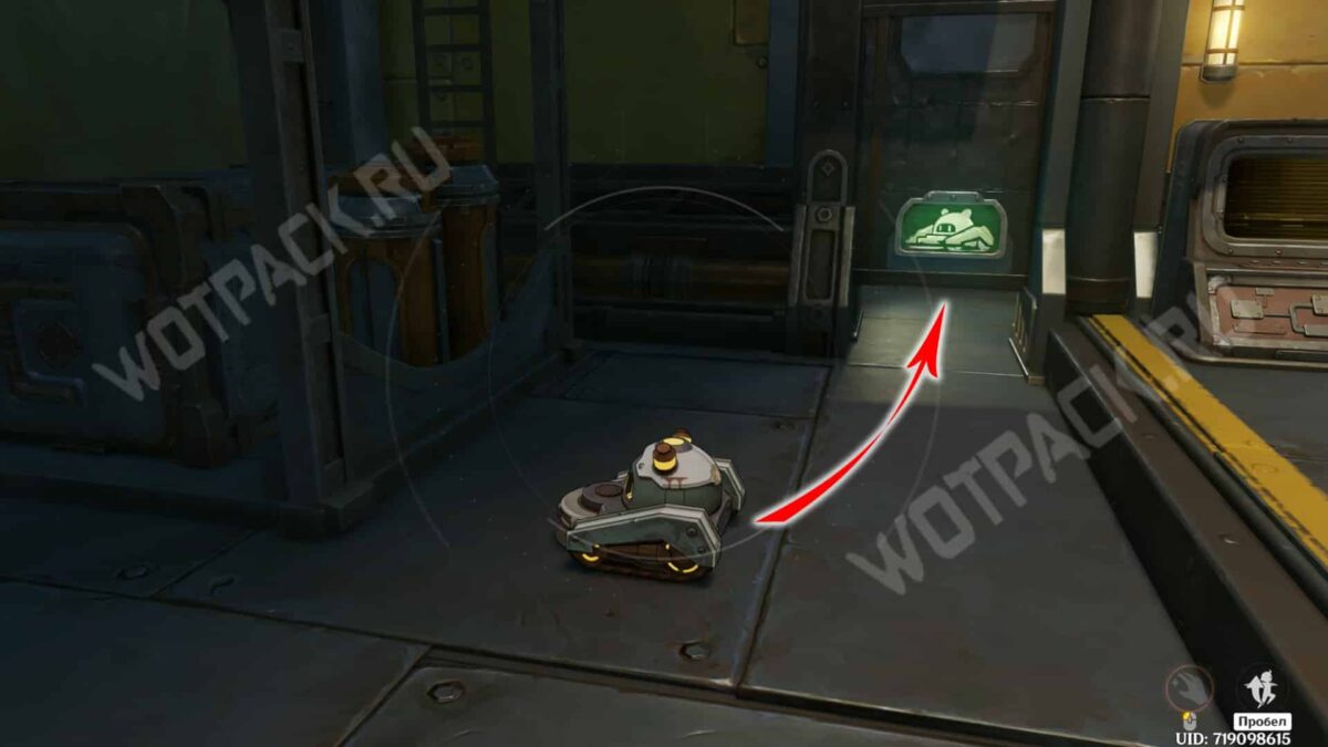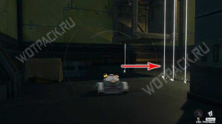 Переместитесь в южную часть исследовательского центра и повзаимодействуйте с панелью управления бота. Проедьте в запертую комнату через специальный вход для чистильщиков.