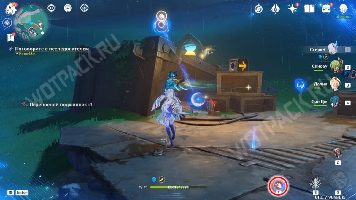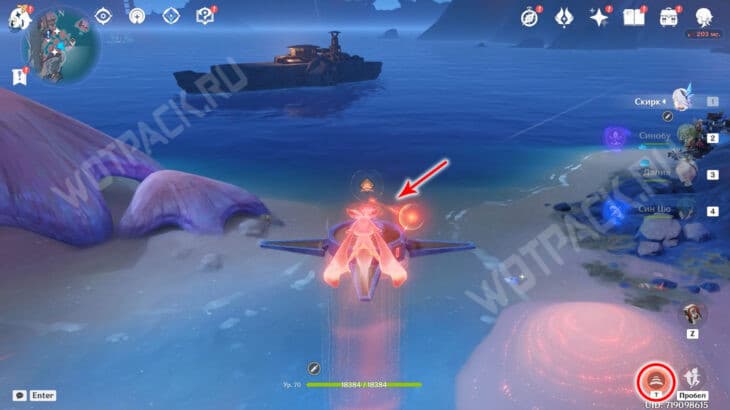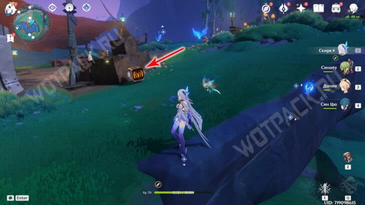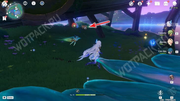 После возвращения всех потеряшек в лагерь откройте три богатых сундука. Затем соедините устройства и прикоснитесь к куухенки. Нажмите «ЛКМ» и взлетите за окулусом.