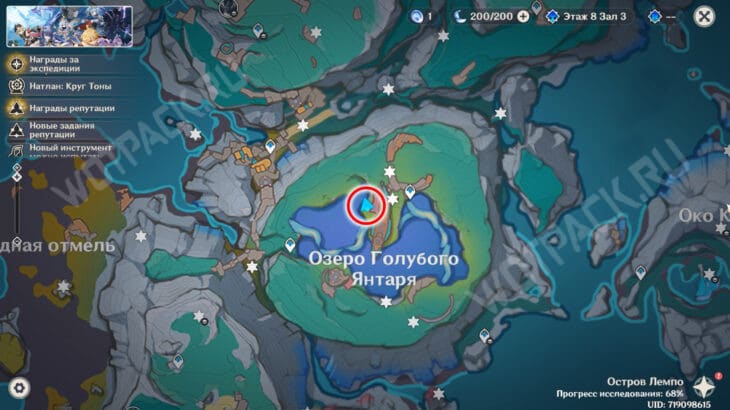 Отправляйтесь на Озеро Голубого Янтаря к статуе кита. Внутри постройки спряталась группа необычных творений. Чтобы разблокировать богатый сундук рядом с ними, разыщите трех ботов неподалеку: